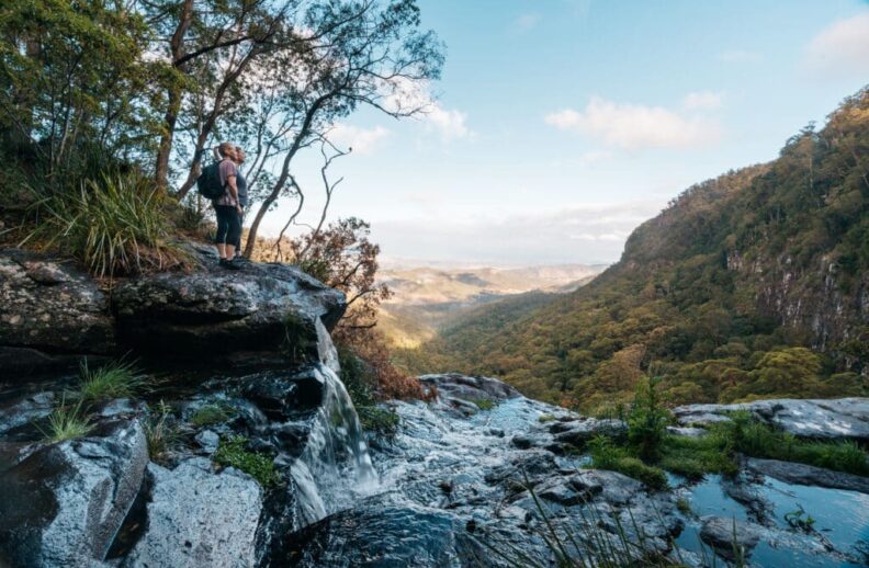 Make a beeline for Lamington National Park if you want to go waterfall spotting. The Moran Falls are not to be missed. It’s a 4.4km return loop in the Green Mountains section, close to the original O’Reilly’s hut and quite popular with locals for a sunset vista. The two-tier Elabana Falls are on the Box Forest Circuit, another 4 km loop, and are one of the most popular falls in the park. Remember, water levels will vary depending on the season, and a quick check with park authorities can help you avoid disappointment. Looking to have a waterfall to yourself? Beechmont Estate and Park Tours offer a private waterfall hike.